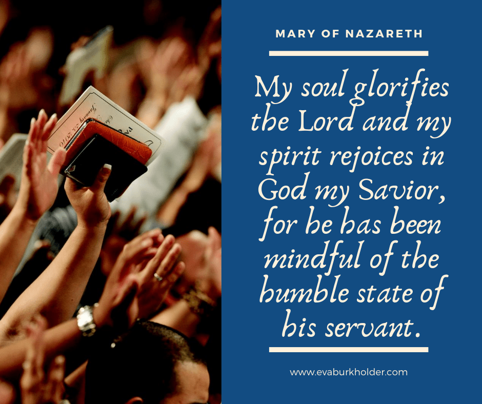 And Mary said: āMy soul glorifies the Lord and my spirit rejoices in God my Savior, for he has been mindful of the humble state of his servant. From now on all generations will call me blessed, for the Mighty One has done great things for meāholy is his name. His mercy extends to those who fear him, from generation to generation. He has performed mighty deeds with his arm; he has scattered those who are proud in their inmost thoughts. He has brought down rulers from their thrones but has lifted up the humble. He has filled the hungry with good things but has sent the rich away empty. He has helped his servant Israel, remembering to be merciful to Abraham and his descendants forever, just as he promised our ancestors.ā