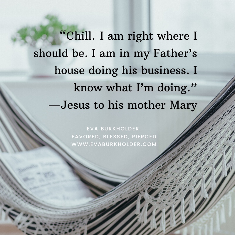 Jesus, thank you that you are always about your Father’s business. Teach me not to be anxious, but instead to treasure your words and remember that you know what you are doing.