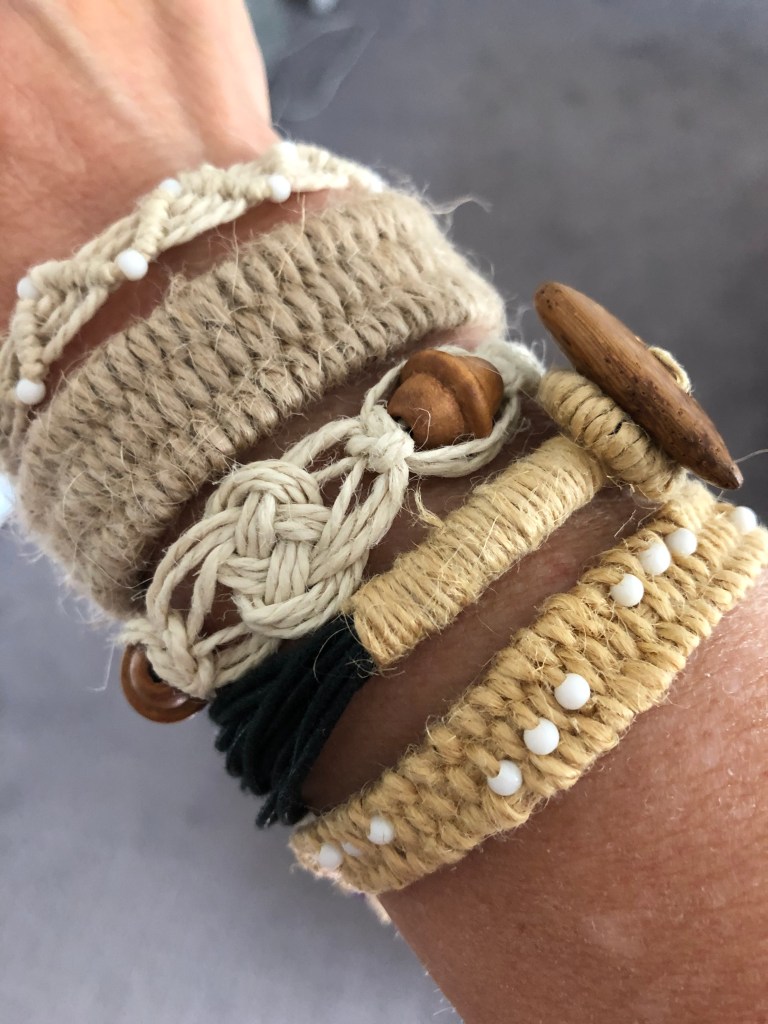 My love for crafting began at the antique treadle sewing machine my parents shipped over to Papua New Guinea and which now holds plants in my living room. Then as a teen in the 70s, I latched onto macramé and was only held back by the lack of ready supplies in that foreign land.