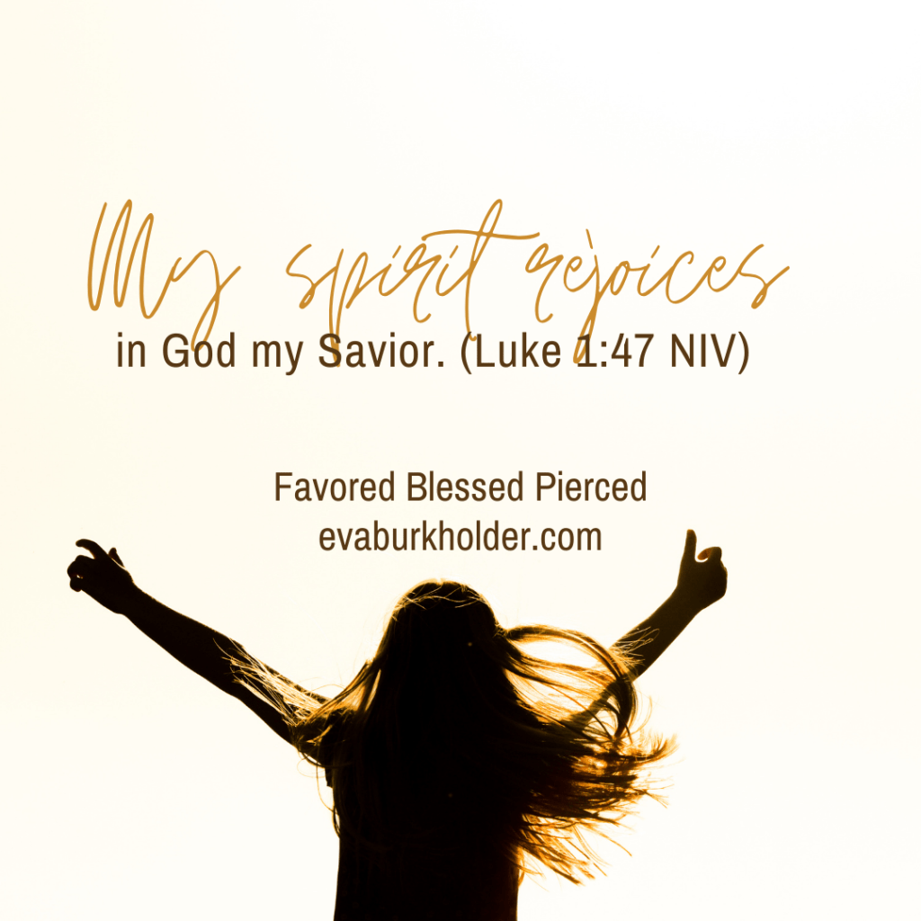After the angel, Gabriel, told Mary she would give birth to the Savior, Mary set off to tell Elizabeth. When Elizabeth heard Mary’s greeting, her unborn baby jumped for joy and Elizabeth responded by blessing or speaking well of Mary. Mary in turn praised God by saying, “My spirit rejoices in God my savior” (Luke 1:47).