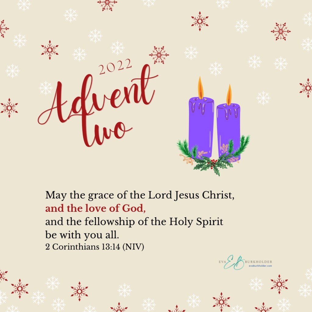 My advent meditation is inspired by my recent study of 2 Corinthians which ended with a beautiful benediction—the only one that mentions all three persons of the Trinity: May the grace of the Lord Jesus Christ, and the love of God, and the fellowship of the Holy Spirit be with you all (2 Corinthians 13:14 NIV). Last week, we looked at grace. Today, we focus on love.