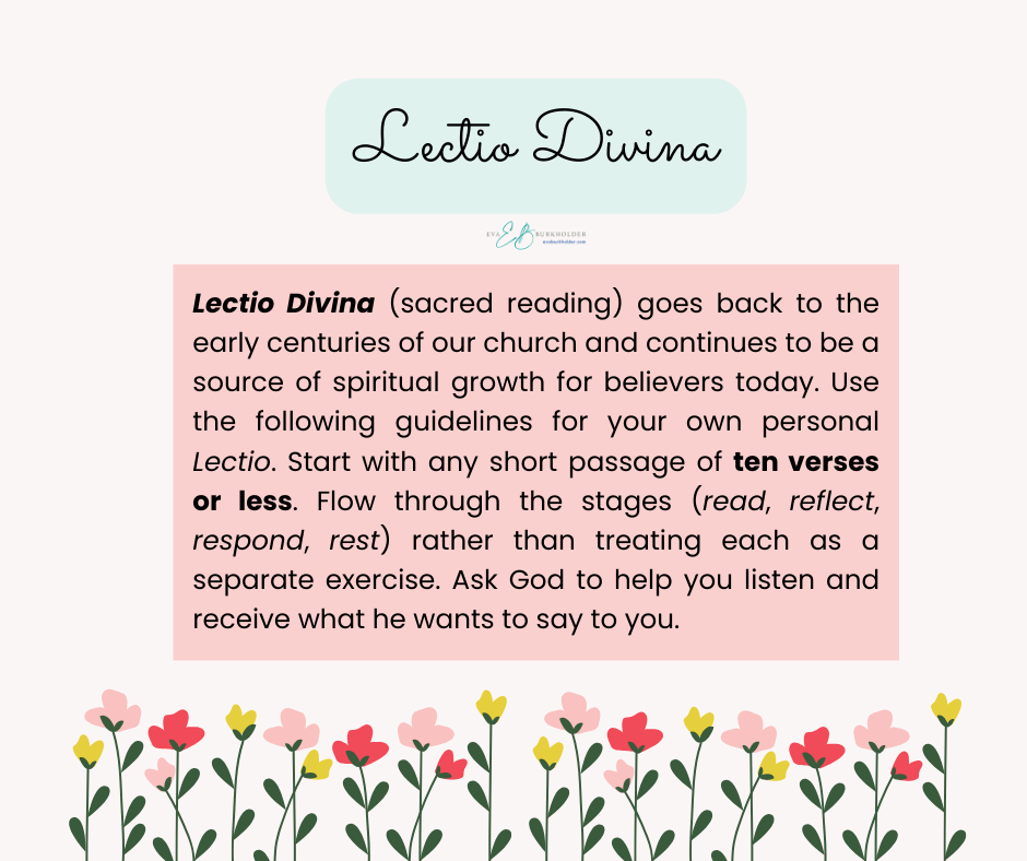 If Lectio Divina is new to you, I hope you’ll give it a try. If this is a treasured practice for you, tell me about your experience.