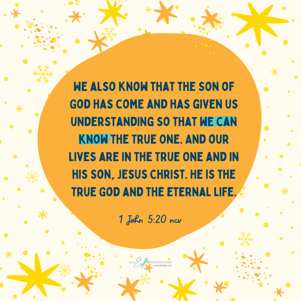 We also know that the Son of God has come and has given us understanding so that we can know the True One. And our lives are in the True One and in his Son, Jesus Christ. He is the true God and the eternal life.